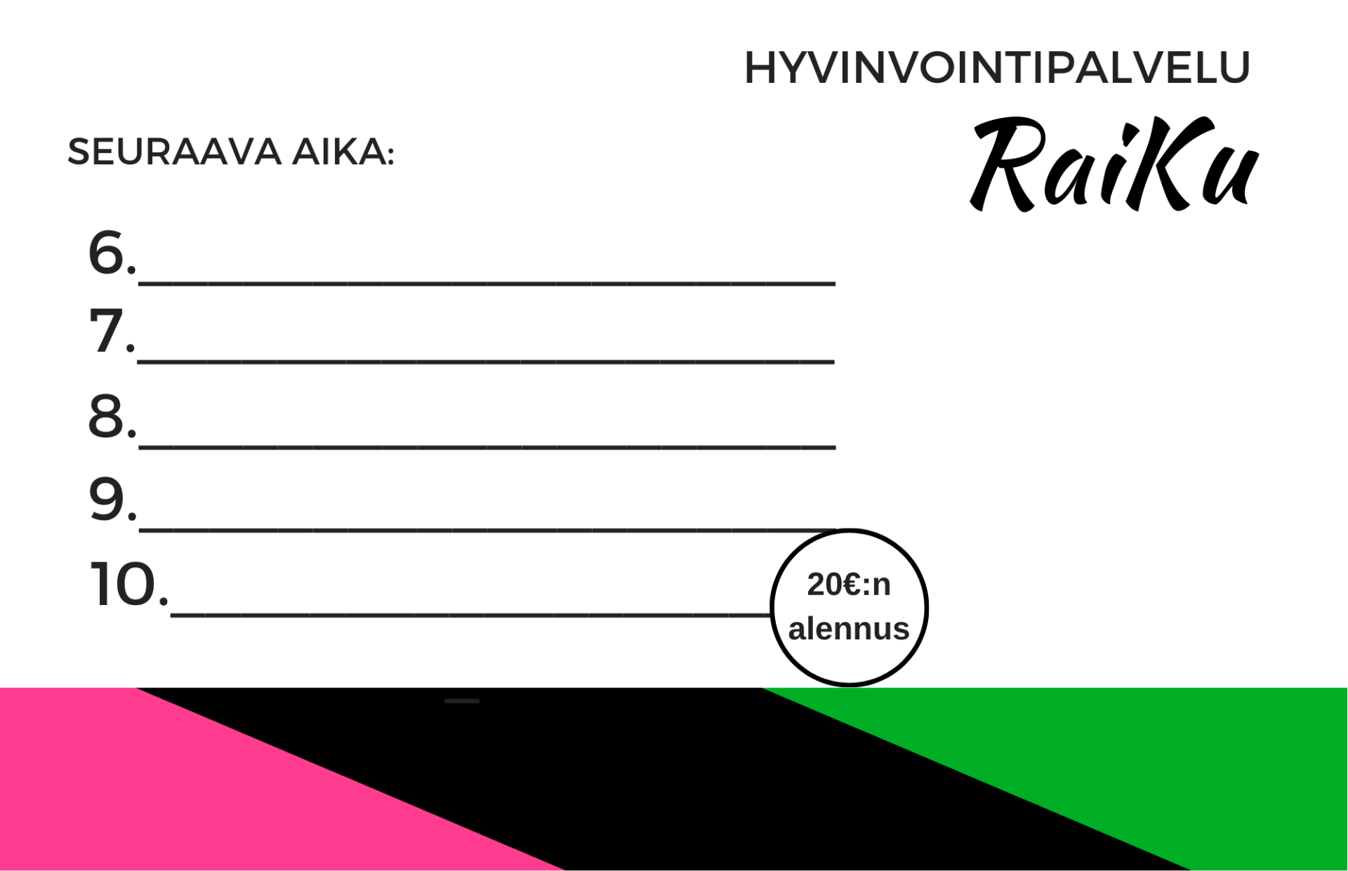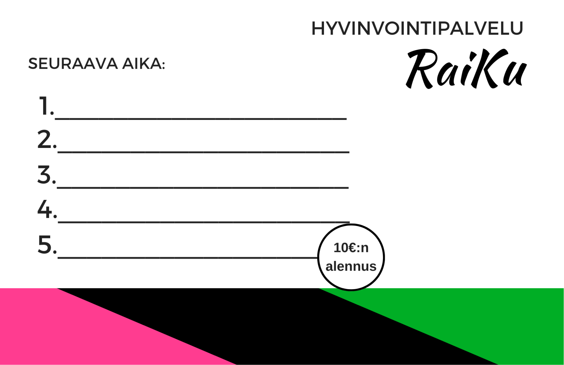 RaiKun hoidoissa käyneiden kesken arvotaan tuote- ja hoitopalkintoja muutaman kuukauden välein.